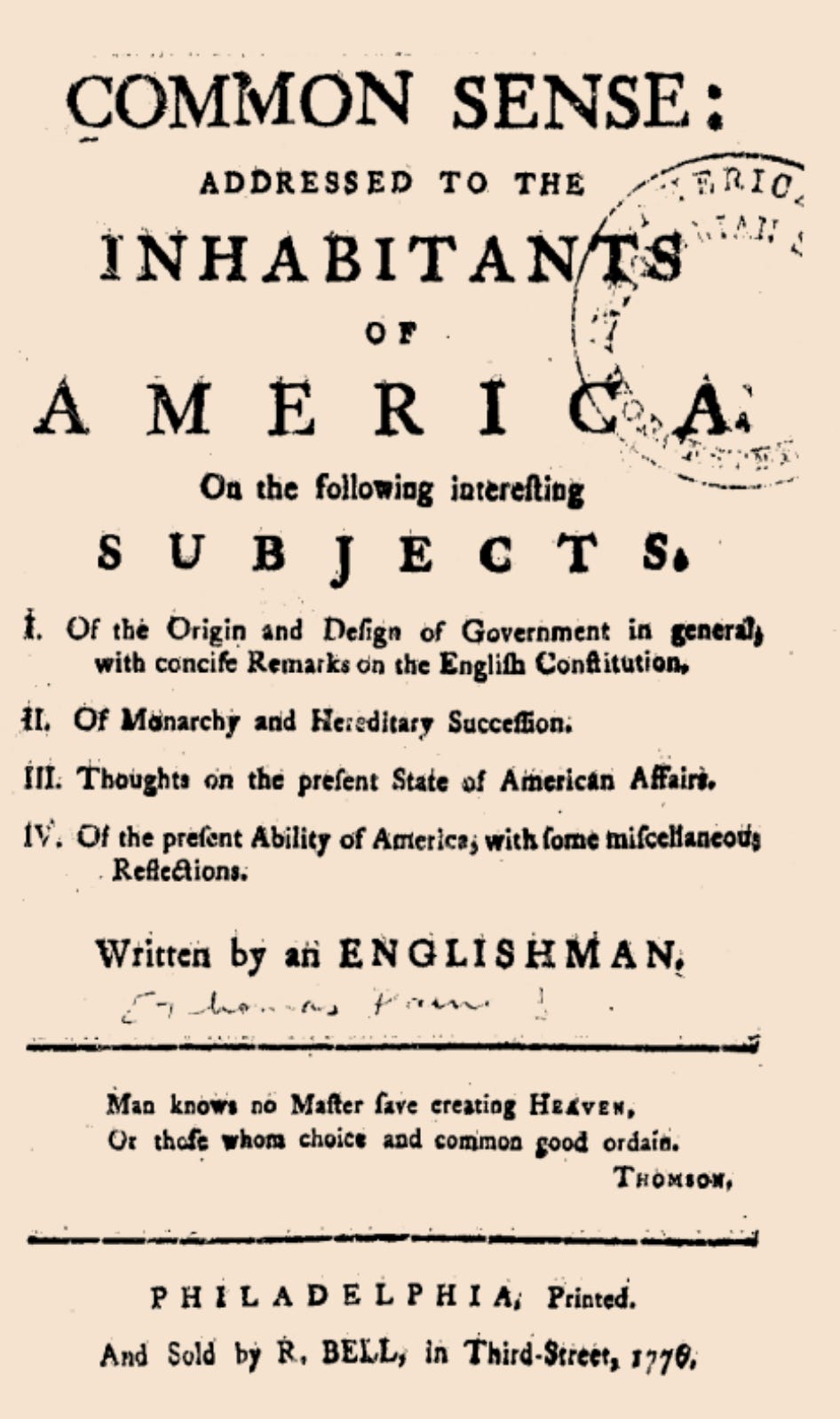 Much of what follows here is inspired by a beautiful reflection by historian Jonathan Horn in The Free Press this week, as the country marks the 250th anniversary of Thomas Paine’s Common Sense, first published on January 10, 1776.
